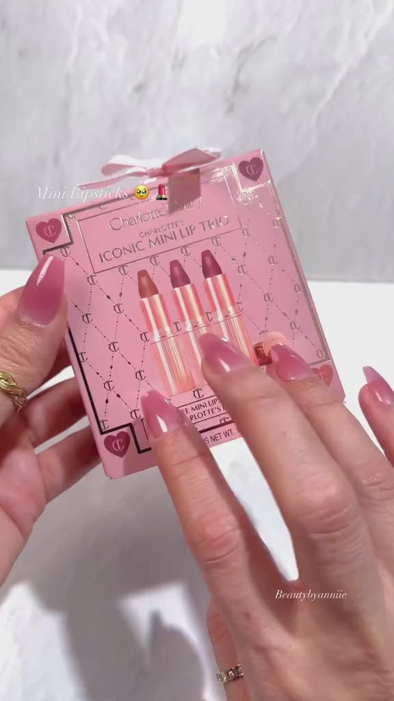 Discover my Iconic Mini Lip Trio, a trio of mini lipsticks in 3 of my most-loved, suits-all shades: Pillow Talk Medium, Walk of No Shame and Stoned Rose!