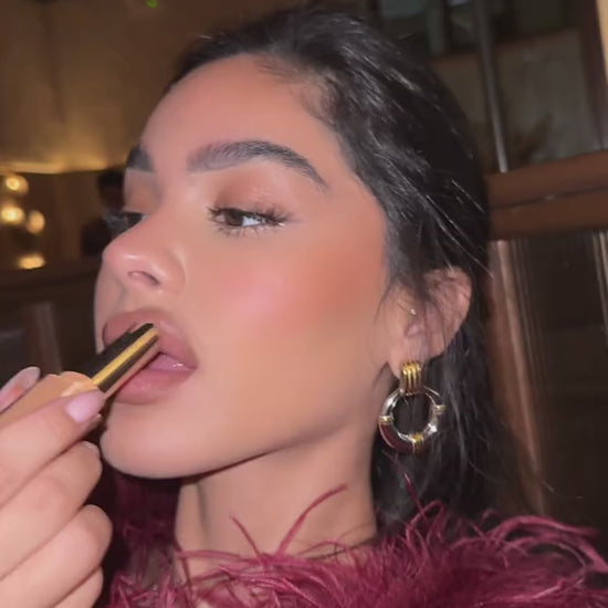 Get luscious shine with this glossy, medium pigment lipstick that is loaded with Vitamin E and Shea Butter, plus Squalane to lock in moisture for up to 8 hours.
