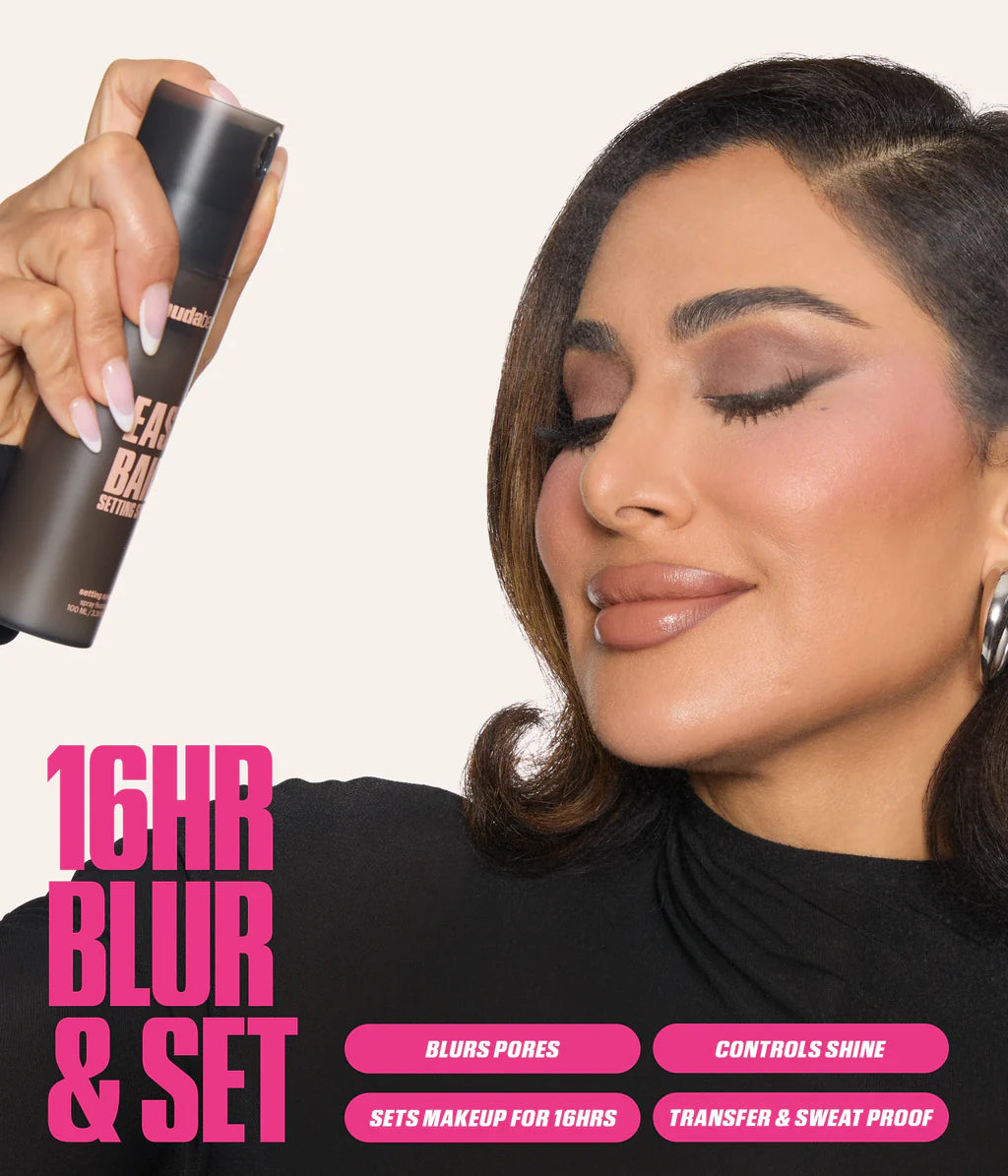 A long-lasting setting spray that blurs pores, controls shine & locks makeup for 16hrs.
